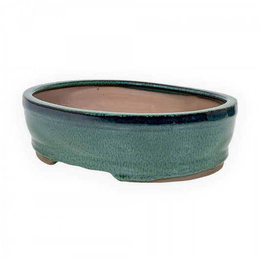 Ovale keramische bonsai pot 15,5 cm groen